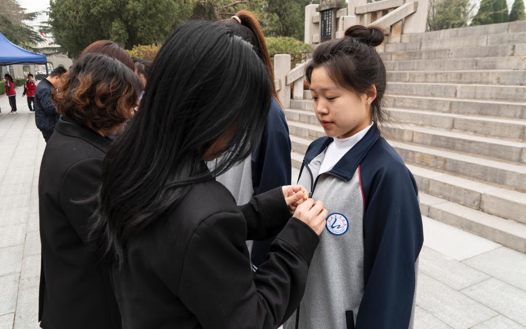 随后,各二级学院团总支书记为新团员佩戴团徽,全体团员青年重温入团誓词,并面向革命烈士纪念塔庄严宣誓,将铭记先烈事迹、树立远大理想,努力学习、报效祖国。