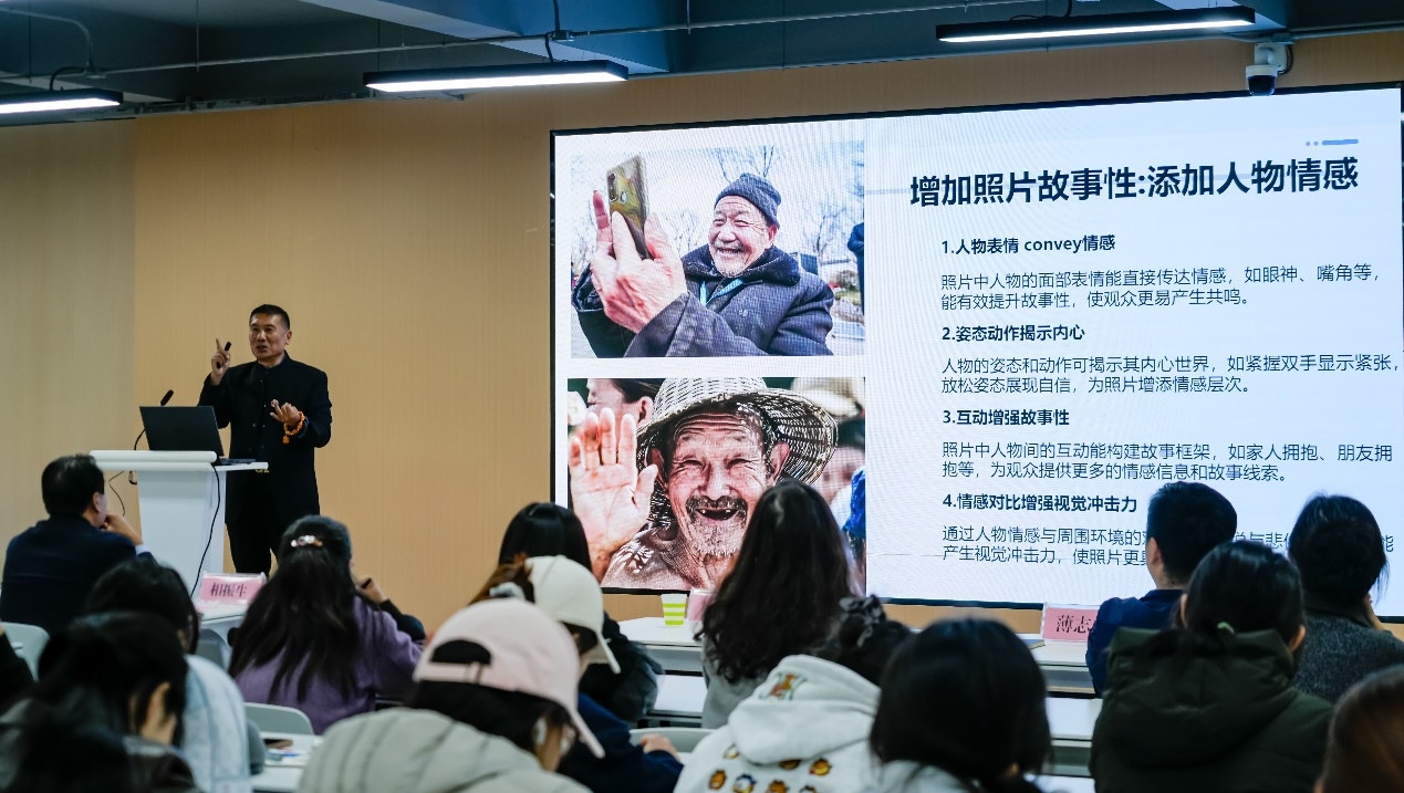 本期活动由中国摄影家协会会员、摄影多媒体工作室主理人翟小锋老师担任主讲。翟老师围绕“手机摄影核心技巧与实战应用”这一主题,为在场师生带来了一场内容丰富、生动实用的摄影知识讲座。课程涵盖了手机摄影的理论基础、构图技巧、光影运用、现场实操示范及后期修图等多个方面。并结合校园实景案例,深入浅出地讲解了如何捕捉校园建筑之美、记录师生活动之趣、展现自然风光之秀,现场演示了参数设置与常用修图软件的操作技巧。整场讲座互动积极、氛围热烈,师生们纷纷表示受益匪浅。
