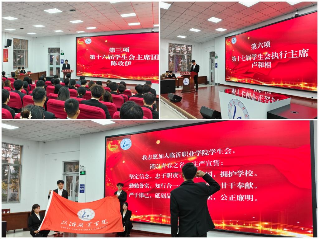 第十六届学生会主席团代表汇报了工作一年以来的经验和感悟。新一届学生会主席团代表作表态发言,承诺将牢记为同学服务的初心,带领全体成员以实际行动践行服务宗旨,发挥出学生干部的先锋模范作用。在庄严的宣誓仪式中,新一届学生会成员更加明确了自身的职责与使命。