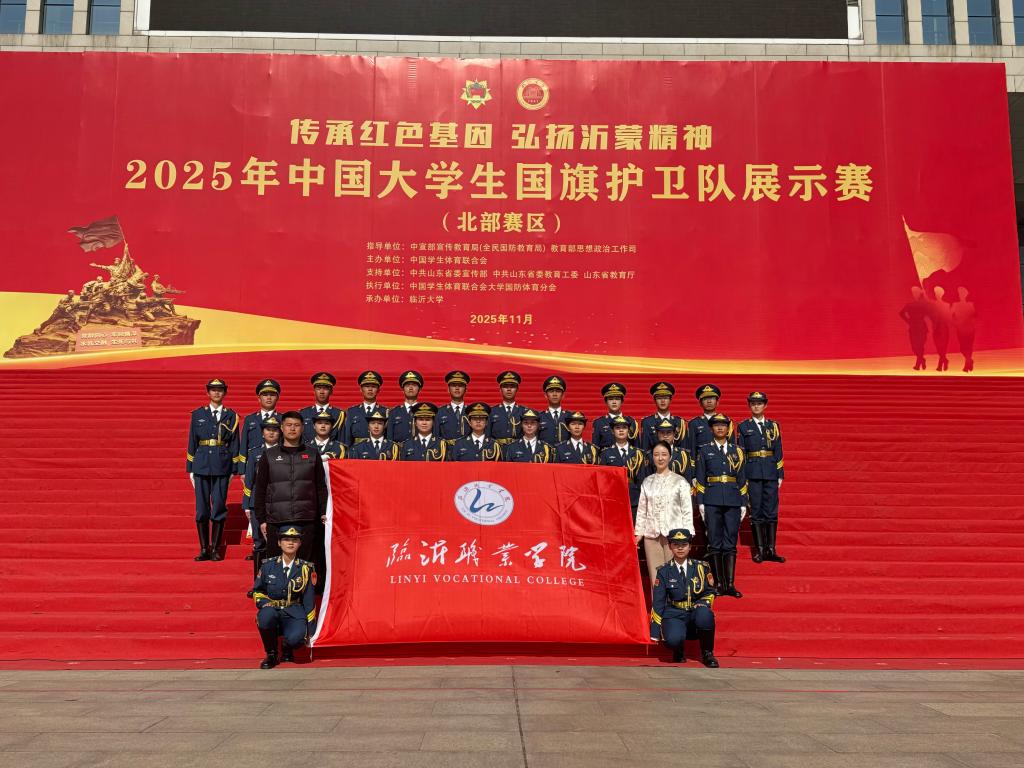 11月8—12日,由中宣部、教育部指导,中国学生体育联合会主办的2025年中国大学生国旗护卫队展示赛(北部赛区)在临沂大学举行。我校国旗护卫队以昂扬的斗志、规范的队列和标准的动作要领,一举获得一等奖3项、二等奖1项的优异成绩。
