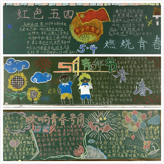 为庆祝五四青年节,弘扬五四运动中“爱国、进步、民主、科学”的精神,激发同学们的爱国爱党热情,5月4日到9日,现代服务学院开展了“传承五四薪火,展现青春风采”黑板报活动。