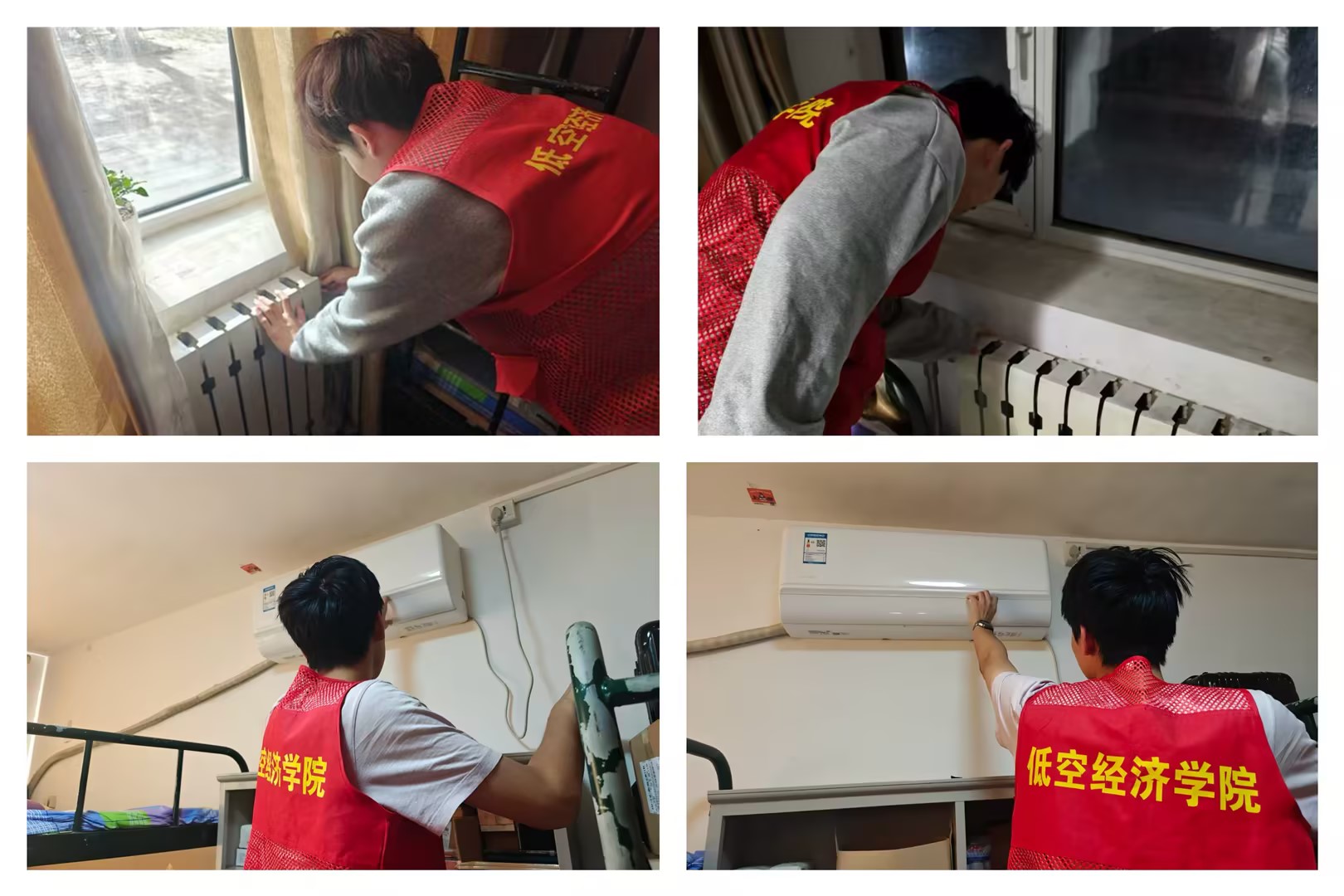 为确保同学们能在寒冷天气中拥有温暖、舒适的学习与生活环境,12月1日,低空经济学院组织开展“暖冬护航”暖气空调专项检测服务。