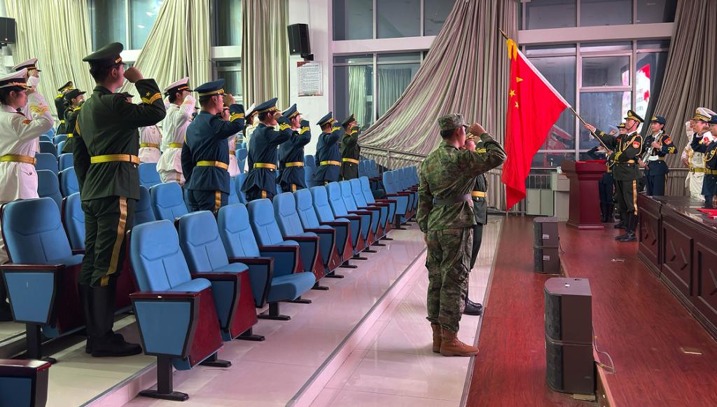 国旗护卫队队长李兴豪带领全体成员庄严宣誓,将秉承炙热的爱国之心,爱旗护旗,强化训练,提高标准,规范完成每一次国旗升降任务。